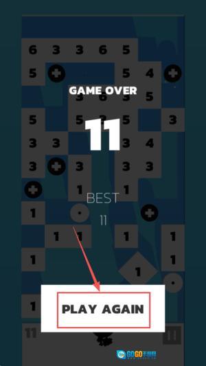 4、最后,要是屏幕上出现“GAME OVER”的提示,点击“PLAY AGAIN”按钮就能重新开启挑战。