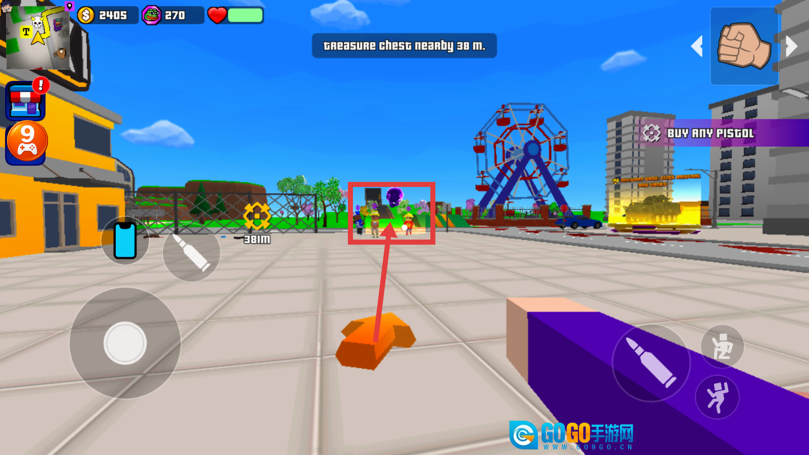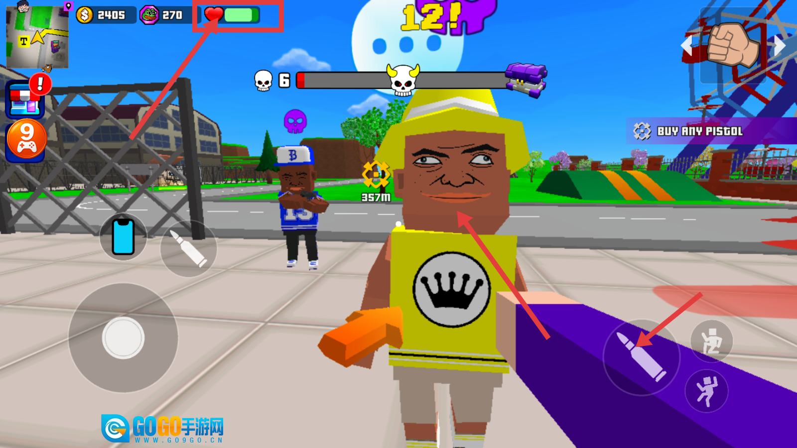 2、战斗过程中留意血量条,借助攻击按钮发动攻击,维持自身战力,以推进【BUYANYPISTOL】任务的进度。