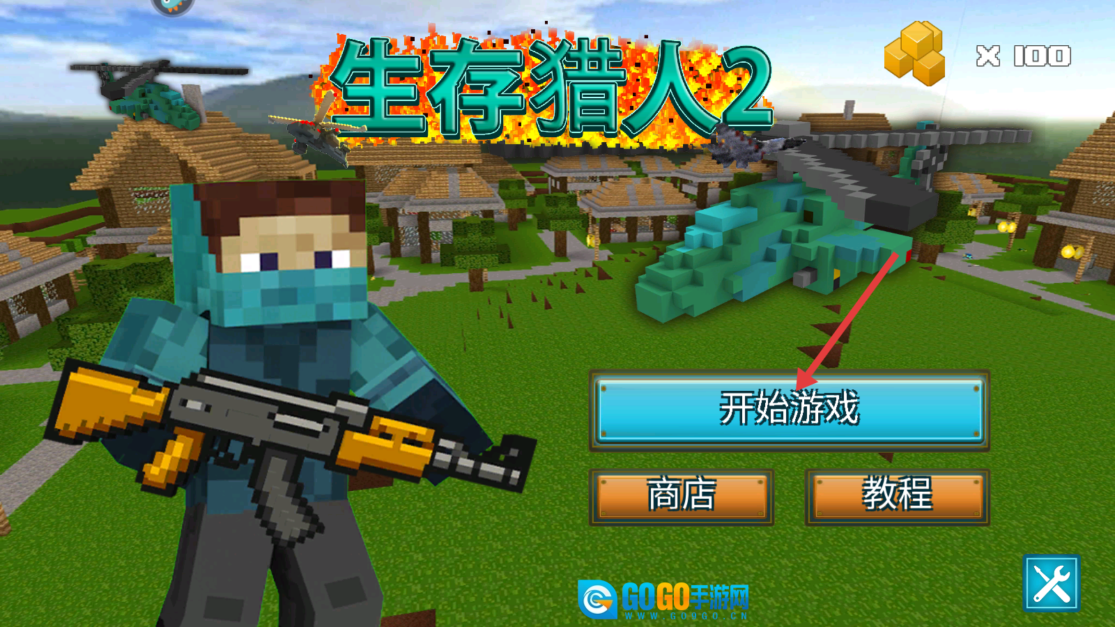 1、点击【开始游戏】即可进入《生存猎人2》,进入后可以先查看【商店】和【教程】功能,等熟悉这些内容后再开启游戏。