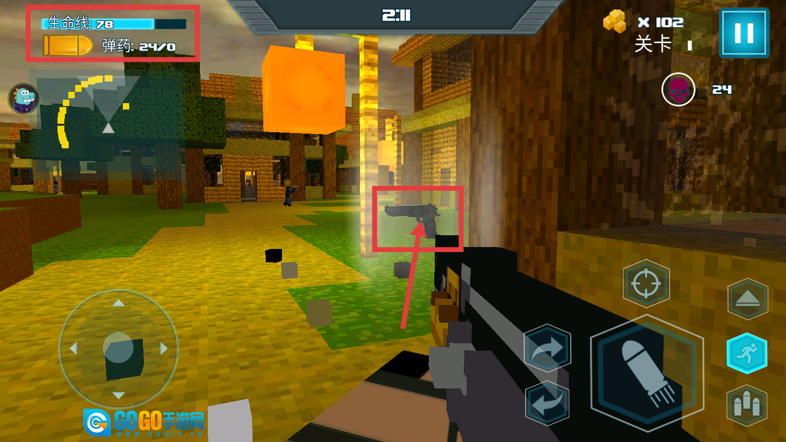 3、拾取掉落的枪械以补充武器资源,注意关注【生命线-78】与【弹药-24/0】的数值变化,确保自身战力处于稳定状态。