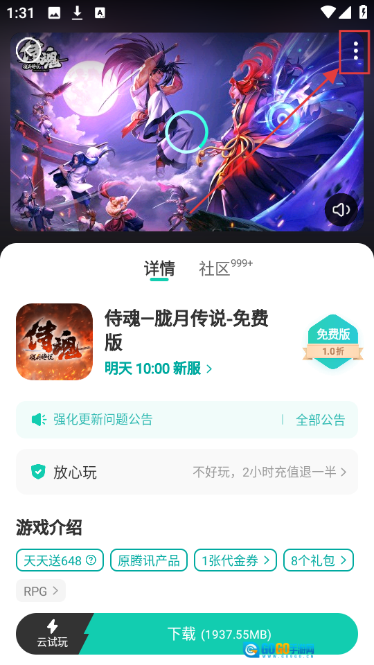 2、进入游戏详情页后,点击右上角三点按钮,可弹出分享选项,准备分享游戏哦。