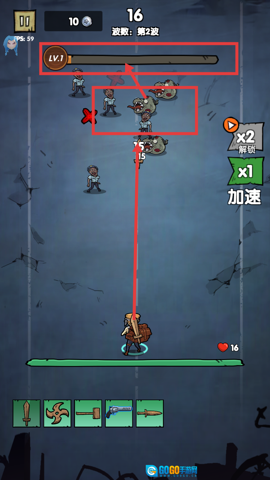 2、武器升级后,点击【战斗】按钮,进入第1波战斗,开启闯关进程。