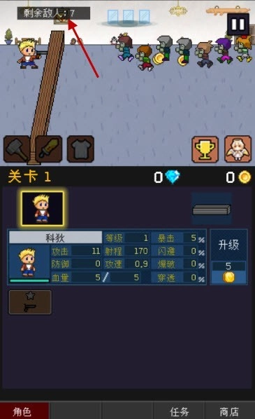 2、左上角区域会显示当前关卡还剩下多少敌人,方便大家随时了解战况的推进情况。