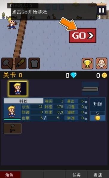 1、进入游戏主界面后,点击“go”按钮就能马上开启关卡挑战,整体节奏紧凑,玩家可以快速上手。