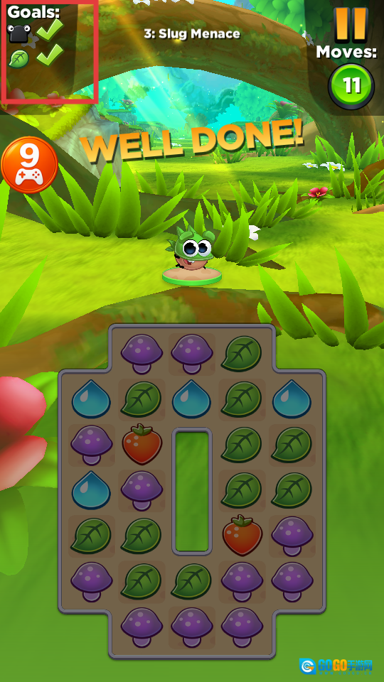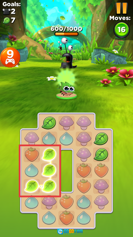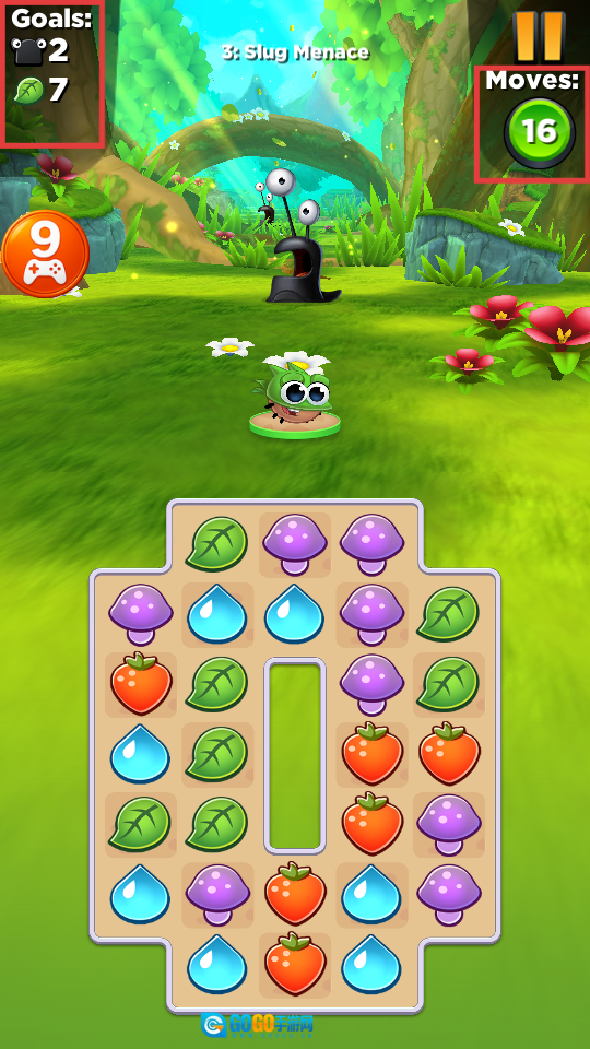 进入关卡后,注意查看左上角的目标任务,像【消灭鼻涕虫】和【收集树叶】的具体数量要求,还有右上角显示的【移动步数】限制。