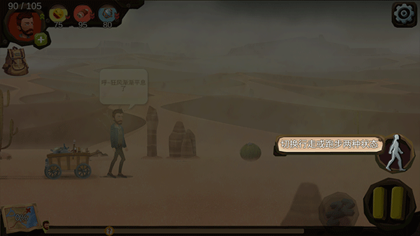进入游戏后,能够借助按键将角色的状态在行走与跑步之间进行切换。
