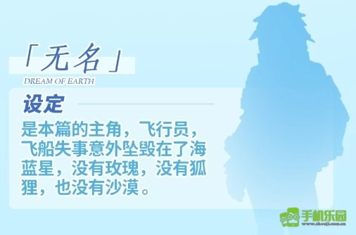 是本篇的主角,飞行员,飞船失事意外坠毁在了海蓝星,没有玫瑰,没有狐狸,也没有沙漠