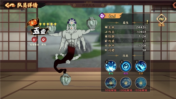 必杀技:【拾之牙 圆转旋牙】获得自身攻击力140%的护盾。对自身周围圆形范围造成攻击力300%伤害,然后对每个敌人有60%概率[嘲讽]。