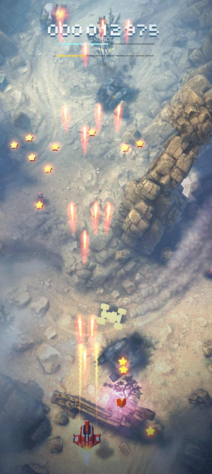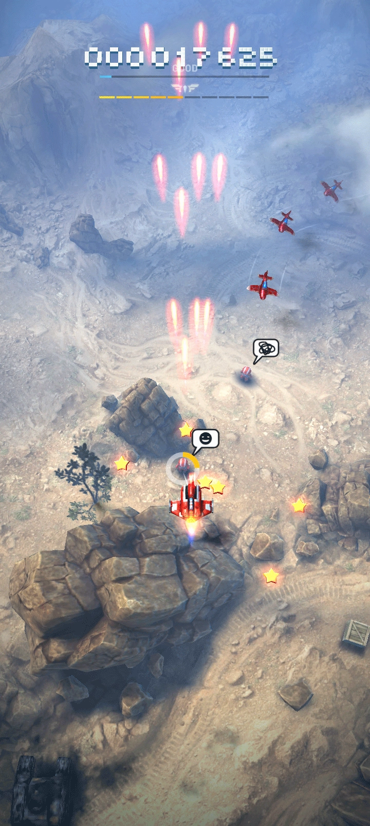 3、进入关卡以后,操控飞机攻击敌方目标,收集星星