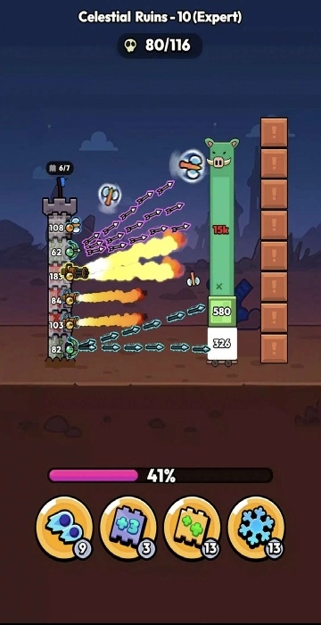 2、敌人类型:到了游戏后期,会陆续出现高速飞行的敌人、血量厚实的坦克型怪物以及带有护盾的精英怪物等,这时候就需要根据不同敌人的特点来布置对应的武器(比如魔法塔能够克制带护盾的敌人,弓箭塔则适合对付高速飞行的单位)。