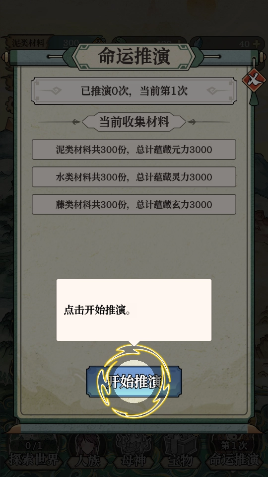 3、花费收集好的材料,就可以开始人类命运的推演;