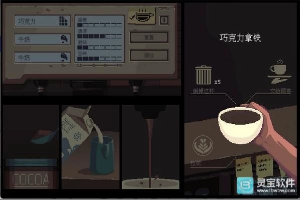 《咖啡物语》是一款模拟经营游戏,玩家将化身为咖啡师,亲手经营属于自己的咖啡店。通过为顾客调制专属饮品,倾听他们的心声、化解烦恼;游戏内提供丰富配方,可根据顾客口味灵活选择。复古像素画风搭配自由定制的细节设计,大幅提升了沉浸感;还有多样挑战等待解锁,让你在经营中收获独特故事与全新体验。