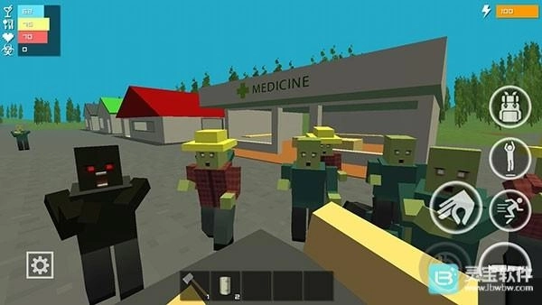 游戏的核心挑战是生存,角色具备血量、体力属性,还会产生饥饿与口渴的状态。我们需要在小镇里到处搜寻食物和各类资源,碰到僵尸时就得把它们消灭掉,不过要是有办法躲开这些僵尸,想必没人愿意冒着风险去和它们对抗。