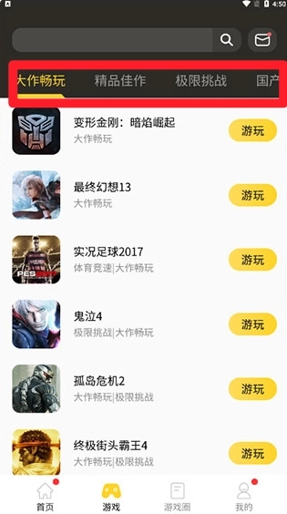 4、还可以切换至"游戏"板块,根据分类进行选择。