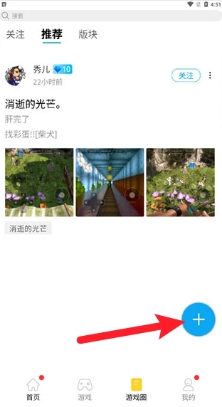 5、支持在"游戏圈"中点击"+"号发布帖子。