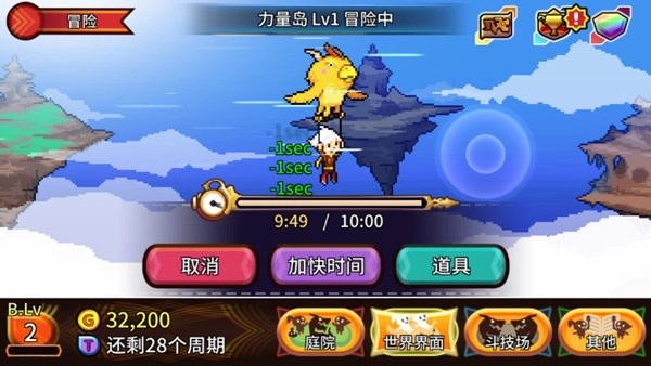 完成冒险需要花费现实中的时间,即便游戏未启动,计时也会持续进行;点击画面提供支援,能够让游戏进度推进得更快。