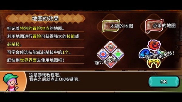 标注着特殊冒险地点的地图。借助地图展开冒险,能获取强力技能或必杀技。可以从候选的技能或必杀技里学会其中一个。赶紧前往世界界面使用这张地图吧。
