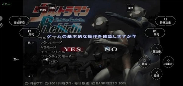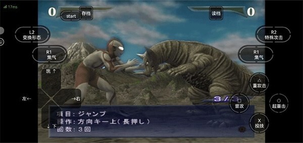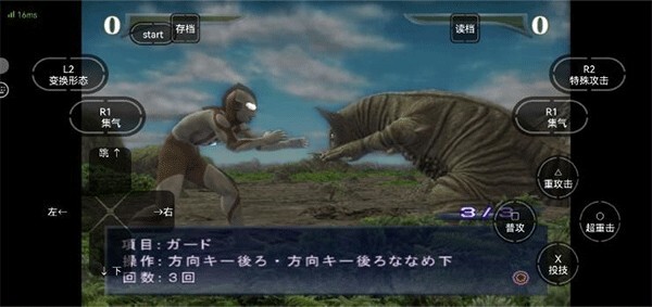 1、由于游戏是日文界面,这里提供了中文菜单对照图供参考。玩家可通过左侧方向键选择心仪的模式,选定后点击右侧的【〇超重击】就能完成确认(系统默认【X投技】为取消操作,【O超重击】为确认操作)。游戏进行期间,随时都能点击界面上方的【存档】和【读档】按钮,执行存档与读档的操作。