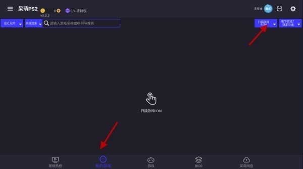 5、接下来点击底部的“我的游戏”,然后选择右上角的“扫描游戏ROM”选项,最后选择“全自动扫描”功能即可。