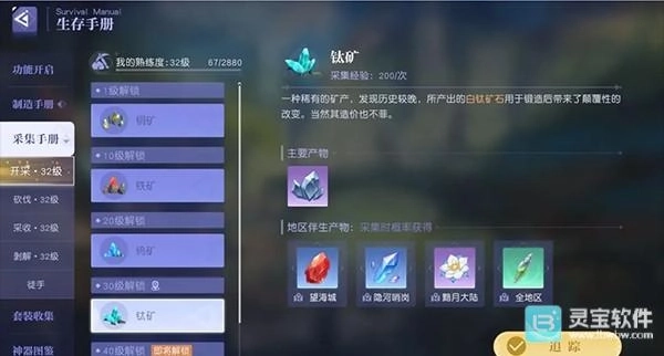你可以通过查看使用手册来找到并追踪自己想要的采集物,说不定能发现一片资源丰富的产地。另外,大家也能在大地图右下角的采集物手册里,查看地图上以及自身周边的采集物,尽量不要错过任何一个稀有的采集物!