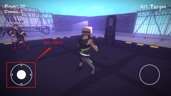 2、进入战斗场景后,可通过屏幕左侧的虚拟摇杆操控角色进行前后左右的移动,需灵活调整站位来应对对手的攻势。