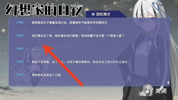 1、进入游戏后,借助一段简短的开场动画与文字说明,你将了解到孤独的“幻想家”在大平市偶然遇见少女山奈晞的背景故事,随后正式开启这段独特的四夜邂逅旅程。