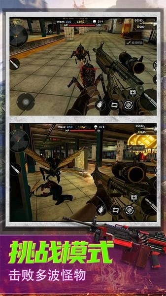 4、挑战模式:这是一种极具特色的游戏模式,它跳出了传统的人类对抗框架,创新地采用人类抵御怪物入侵、守护城市安全的玩法。玩家携带枪械进入游戏地图后,城市便会遭遇怪物袭击,此时玩家的目标就是存活下来,阻挡一波接一波的怪物攻势。越往后怪物的击杀难度越高,但地图中会随机刷新补给箱,为玩家提供更强大的武器装备和血量恢复道具,坚持到最后即可挑战成功。