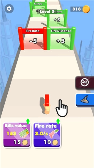 4、累计钞票就可以自动射击商品;