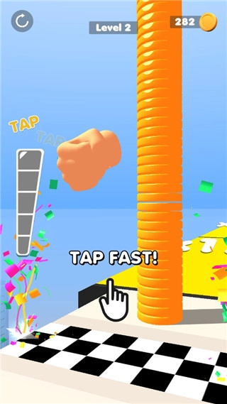 5、成功抵达终点后,点击“tap fast”即可推出金币,从而获得金币倍数奖励。