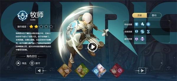 特点:团队里的治疗者与防御核心,手握权杖和魔杖,既能给队友带来强效的治疗援助,也可施展各类辅助法术。