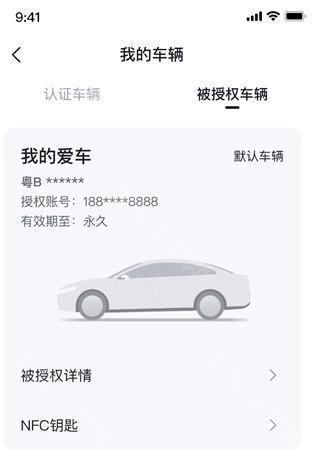 1.被授权人打开比亚迪App,使用对应的手机号登录后,点击“我的”,进入“我的车辆”界面,即可看到已被授权的车辆。