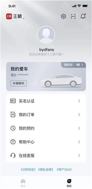 1.登录比亚迪账号,进入“我的”页面,在“我的车辆”板块里找到并选择“车辆授权”选项。