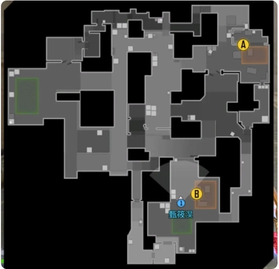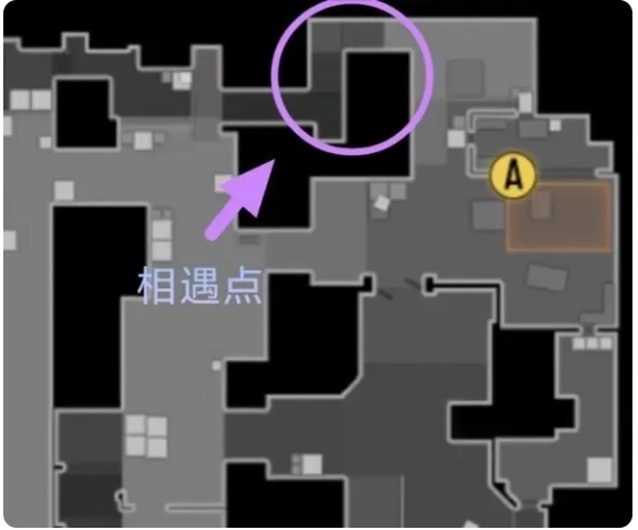 在保卫者视角中,A小道反而成了潜伏者最易突破的薄弱点。若双方均无阻碍地从出生点直奔A小道,大概率会在小道拐角的楼梯区域遭遇。所以保卫者的策略建议以防守为核心,借助A包点内的各类掩体,或是在A连接的窗口位置以逸待劳。
