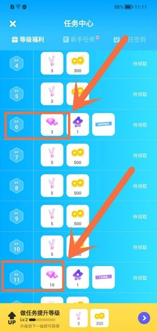 3、提升到一定的等级后,就可以获得钻石奖励。