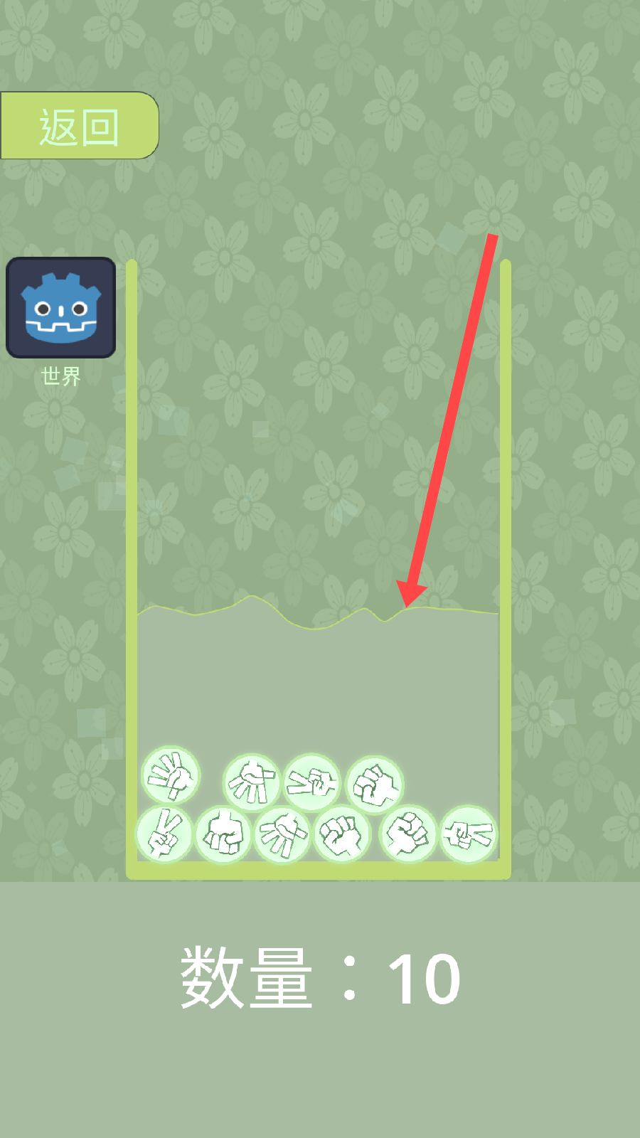2、在界面中进行左右上下滑动操作时,只有当第一个图标成功触碰到其他图标,才能实现数量的增加。