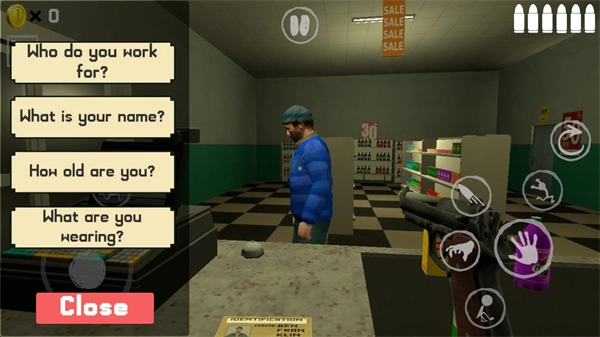 4、这时你可以通过向顾客提问来核实相关信息,要是发现信息有误,就说明对方是伪人,这种情况下可以用手枪将伪人击毙。