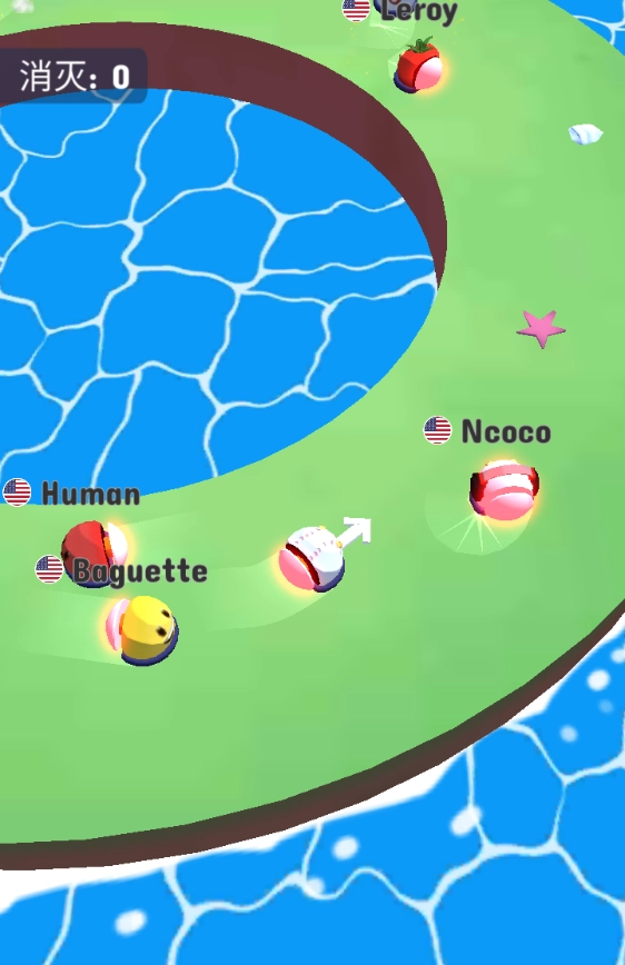 3、每次把对手撞出场地后,自身的小球体积会随之增大,撞击力也会变得更强,因此必须具备强烈的攻击性。