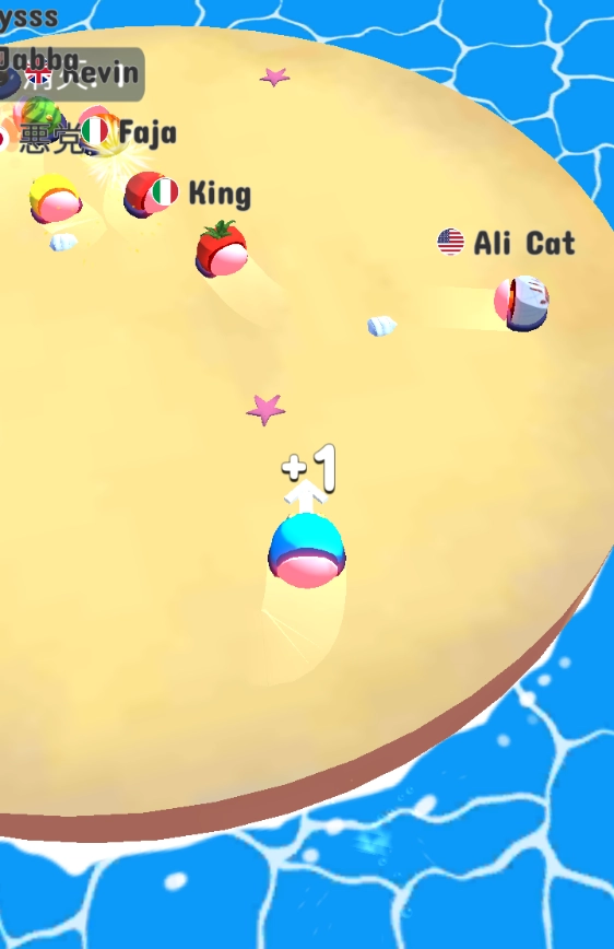 3、当我们撞击对手并将其撞出场地时,就能获得分数,同时球也会随之变大。