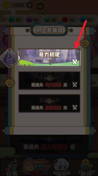 1、进入游戏后,我们挑选一道关卡进入。