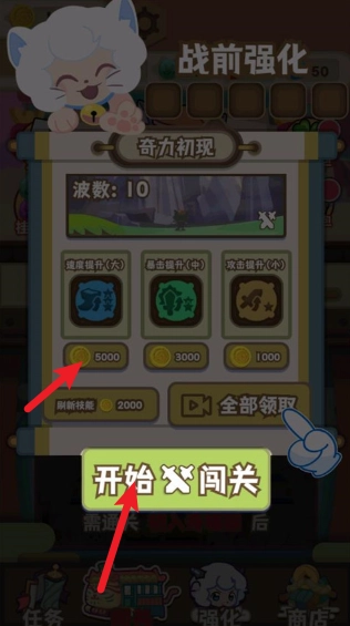 2、接下来会展示当前关卡的相关信息,还能在开始闯关前对部分能力进行升级,之后点击开始闯关按钮就可以了。