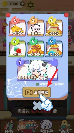 首先是每日签到,记得通过观看广告来领取,这样能拿到三倍奖励!