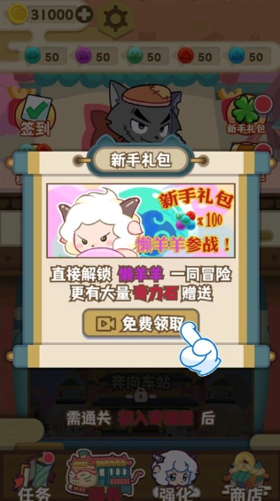 3、新手礼包中也有大量金币,还能解锁懒羊羊哦!