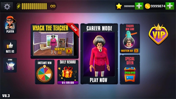 《恐怖老师》(英文名称Scary Teacher 3D)是一款带有轻微恐怖氛围的冒险闯关游戏。在游戏中,玩家的目标是设计并实施各种恶作剧来捉弄那位令人畏惧的老师。游戏包含多个章节和关卡供玩家挑战,丰富多样的恶作剧设计能带来别具一格的趣味体验,而紧张刺激的追逐环节则会带来全新的心跳感受。快来不断完成更多恶作剧,开启这场充满新鲜感的冒险之旅吧!