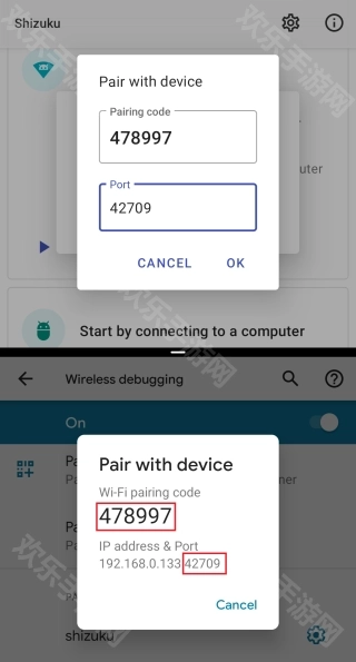 (6)点击软件里的“通过无线调试启动”选项,再点击“配对”按钮