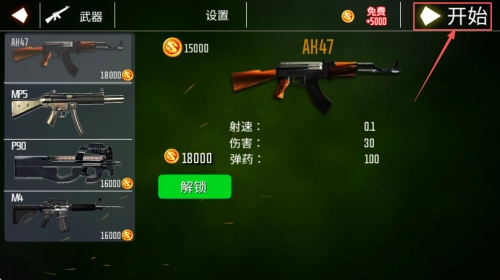 2、武器解锁方法:进入武器选择界面后,找到并点击“解锁”按钮,消耗金币即可完成新武器的购买与解锁操作。