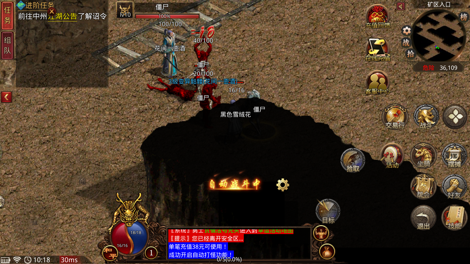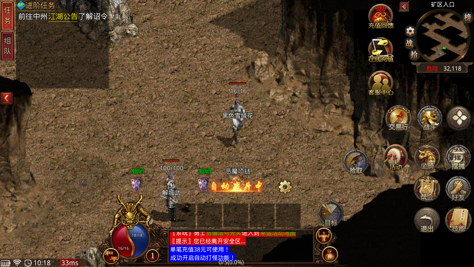 完成新手任务后,记得前往矿区把新手除魔任务做完。每个险恶区域地图都有对应的任务可做,能获取大量经验!这个任务支持累计,今天没做的话,明天也可以补做。