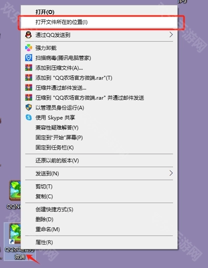 1、在桌面找到【QQ农场微端】的快捷方式,右键点击它,然后选择【打开文件所在位置】,就能看到微端的所有相关文件了。