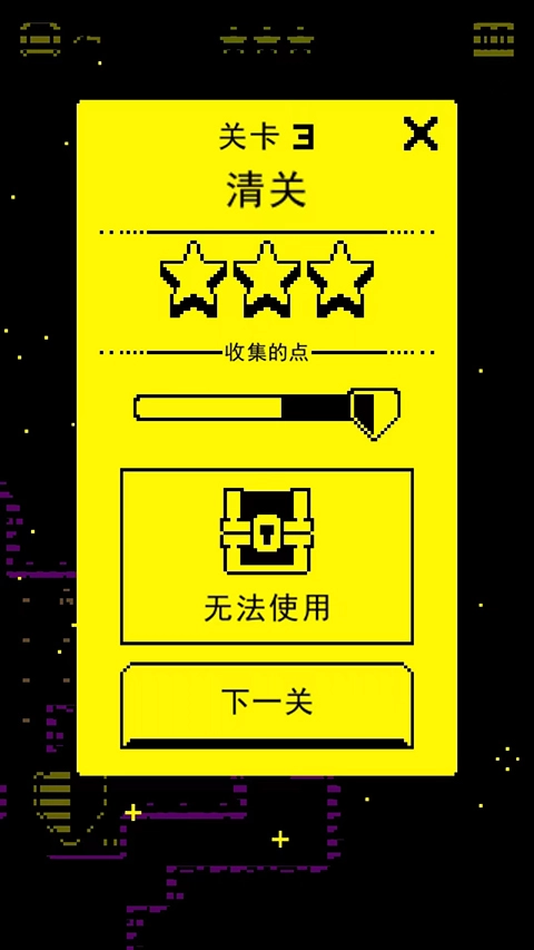 6、如图所示,目前已收集到三颗星星,且已抵达出口,成功闯过本关后,可选择【下一关】按钮挑战下一个关卡。