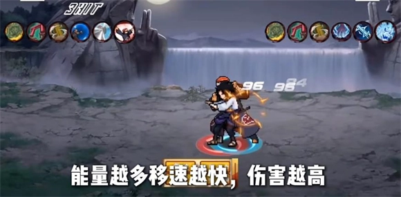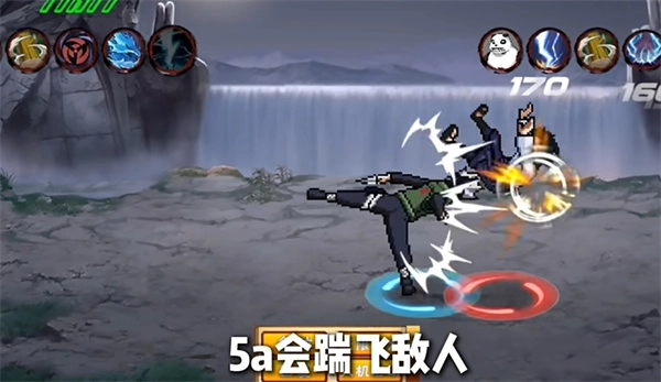 4、二技能查克拉吸取:角色会简单跳起后直接瞬移下砸,若命中目标,即可吸取敌人的查克拉,同时利用对方的奥义点数来恢复自身血量,还能增加一格能量。