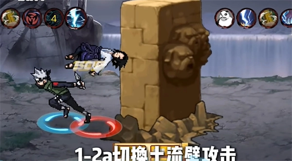 2、第二个技能是复制神威:常规状态下为雷切,按1-2a可直接切换成土流壁攻击,能阻挡敌人移动但不会妨碍自身移动;3-4a对应水龙弹;5-6a则是火风组合技,其中风遁带有吸附效果,而且在后跳过程中角色处于无敌帧状态。